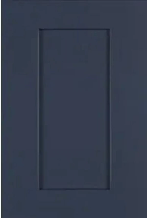 Navy Blue Shaker pairs especially well with white or light gray uppers, warm brass or matte black hardware, white or veined quartz countertops, and light wood or tile flooring. For a more contemporary look, pair it with matte black pulls and a simple white subway or large-format tile backsplash. For a more classic Chicago look, pair it with polished nickel hardware and marble-look quartz.